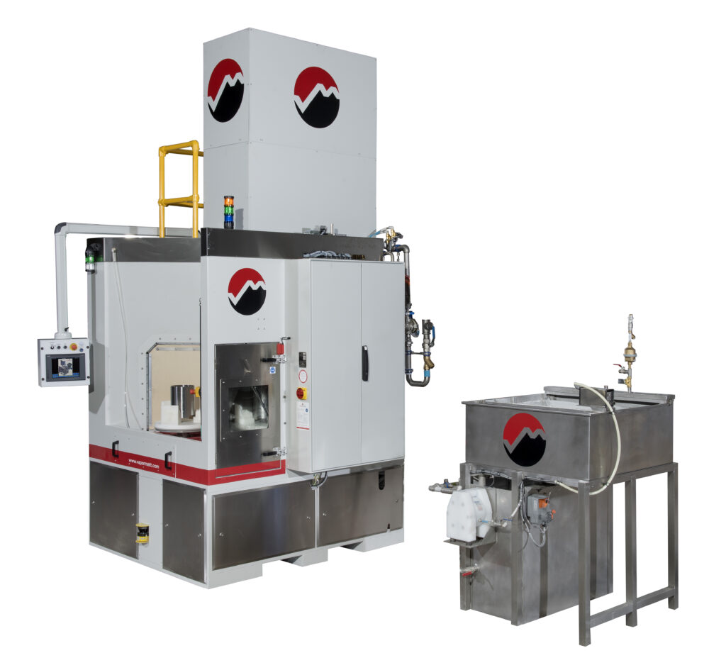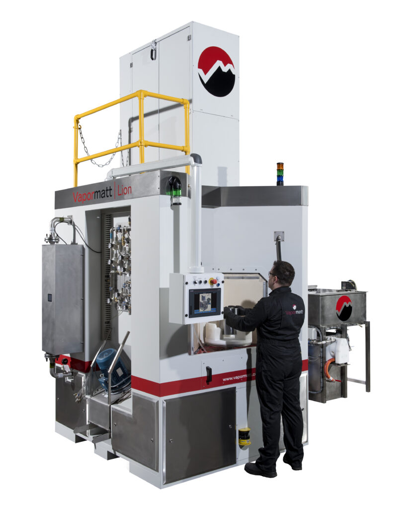 Vapormatt Lion Rotary är en stor och robust roterande indexmaskin för automatiserad våtblästring, utvecklad för högvolymproduktion med krav på stabil och repeterbar ytfinish. Systemet erbjuder ett stort arbetsområde där komponenter bearbetas på någon av fyra individuella palletter.